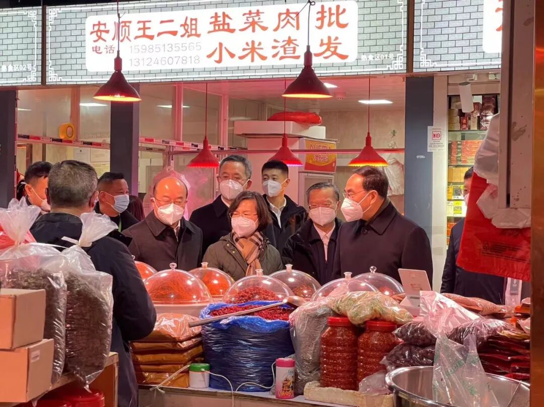 1月20日,省委书记、省人大常委会主任徐麟,到新路口农贸市场调研春节期间民生保障、市场供应、安全稳定、疫情防控等工作,代表省委、省政府对节日期间坚守岗位的广大劳动者表示感谢,祝全省人民新春快乐、幸福安康。徐麟在新路口农贸市场详细了解年货供应、保供稳价等情况。